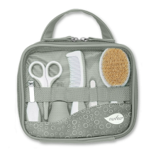 Ce kit contient : un peigne, une brosse à cheveux, une paire de ciseaux, un coupe ongle, des limes et un aspirateur nasal;