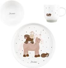 Sterntaler Service de table en porcelaine - Motif ferme - Avec socle en silicone antidérapant et amovible - Vaisselle pour bébé et enfant - Avec assiette, bol de 400 ml et tasse de 200 ml - Blanc : Amazon.com.be: Cuisine et maison