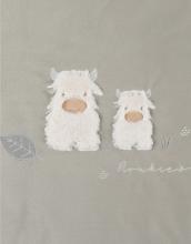 Couverture brodée vert kaki toute douce avec les vaches à longs poils de l'Ecosse de chez Noukie's