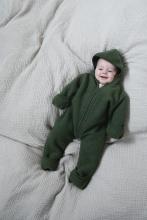 A must-have for all parents: the baby fleece overall made from 100% organic virgin wool (from controlled organic farming) with hood keeps the little one cosy and warm all around.