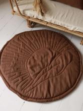 Round linen baby play mat made from OEKO-TEX® certified fabric with hypoallergenic filling. Soft, thick and washable, perfect from birth.