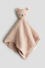 H&M Adorables. Doudou en douce mousseline de coton. Modèle de forme carrée avec ours matelassé. Dimensions 37x37 cm.