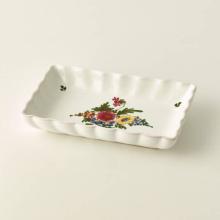Small moulded rectangular majolica bowl, 21 x 13 cm. Hand decorated, made in Italy.