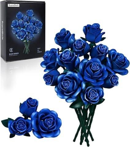 12 Blue Artificial Roses Bouquet Building Set Blue Roses Gifts for Her Birthday Anniversary Valentine's Day Mother's Day Christmas Home Decor 608 : Amazon.fr: Toys & Games