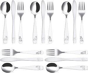 15 stuks kinderbestek, roestvrij staal, 5 x vork, 5 x lepel, 5 x gekarteld mes, veilig, kinderbestek, roestvrij staal, jungle, dinosaurus, gegraveerd, babybestek van roestvrij staal, voor kinderen, : Amazon.com.be: Wonen en keuken