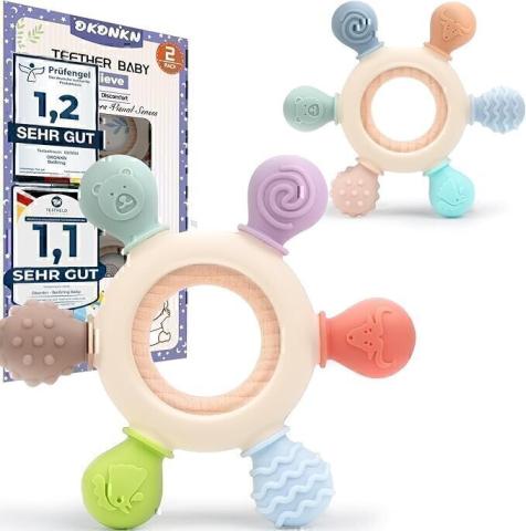 Okonkn 2 Anneaux de Dentition pour Bébé, Jouet Bébé 0-3-12 Mois, Accessoires d'Allaitement sans BPA
