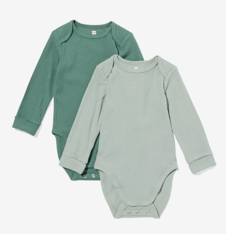 2 bodys longues manches dans de jolis tons verts, doux, en coton élastique et évolutifs, pour compléter notre collection courtes manches des grands et être certains qu'il passe l'hiver plus au chaud :P