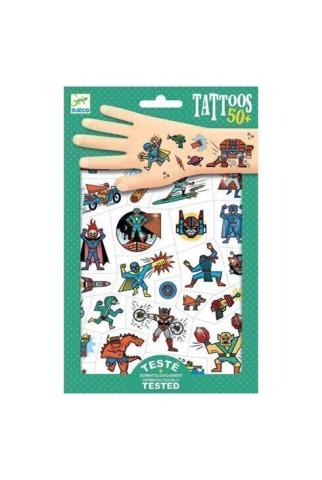 Ces deux planches de tattoos temporaires Djeco permettent de s'amuser pendant un anniversaire et pourquoi pas compléter un déguisement. Prédécoupés, ils s'appliquent facilement avec un peu d'eau. Ces motifs sur le thème des héros contre les méchants avec effet métallisé plairont beaucoup aux enfants. Le petit plus ? Testés dermatologiquement, ces tattoos heroes VS vilains Djeco s'enlèvent à l'eau savonneuse ou avec un
