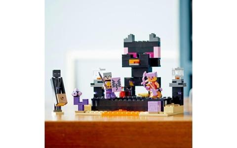 Le guerrier de l’End et l’archer dragon luttent dans l’arène de l’End et font face à des dangers : les armes de leur adversaire, la sculpture du dragon de