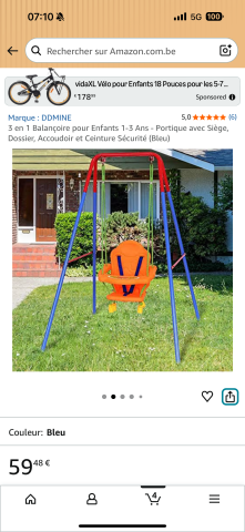 en toute liberté. Il est possible d'ajouter toutes vos envies cadeaux et de recevoir les dons directement sur votre compte. Avec les dons reçus, vous êtes alors libre d'aller acheter vos produits (comme ce '3 in 1 Swing for Children 1-3 Years - Swing with Seat, Backrest, Armrest and Safety Belt (Blue) : Amazon.com.be: Toys
