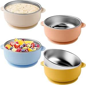 Set of 4 Stainless Steel Baby Bowls with Suction Cup, Anti-scald Baby Bowls, Removable Silicone Bowl, Porridge Bowl for Baby Porridge and Porridge, BPA-Free, Leak-Proof for Small Children : Amazon.de: Baby Products