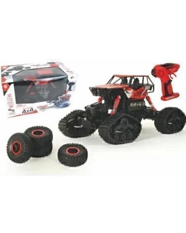 1/14. 2.4 GHz. Toutes fonctions. Batterie 3,7V rechargeable via USB (câble inclus). Méga suspensions. 1 jeu de pneus cross inclus.