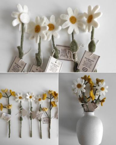 5 jolies marguerites en feutrine pour décorer la chambre de bébé et de Simon.