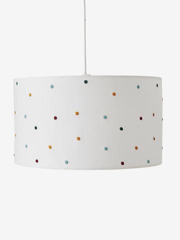 De petits pois brodés prennent place tout en douceur sur ce bel abat-jour pour éclairer la chambre des enfants. Pour créer une jolie suspension, associez-le au câble avec douille en vente sur notre site !