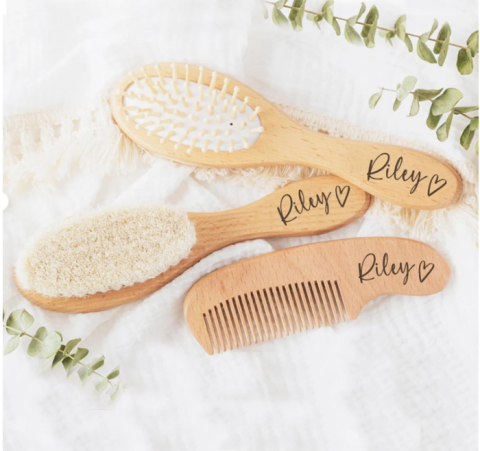 3 Pièces,Brosse Cheveux Bebe Personnalisée, Peigne Bebe Bois,Brosse à Cheveux En Bois Naturel Avec Poils Doux De Chèvre