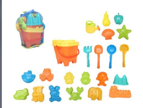 Ensemble d'accessoires pour bac à sable. Nous ne tenons pas nécessairement à celui-ci, un autre set d'accessoires convient très bien aussi 🙂