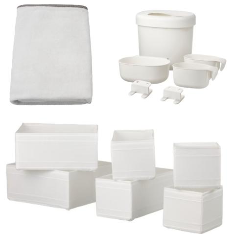 1 protection matelas à langer + 1 poubelle et 3 corbeilles à accrocher + 2 crochets à essuies + 6 paniers de rangement pour tiroirs