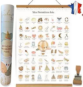 TIPICHOU Affiche mes premières fois à tamponner Cadeau naissance bébé fille garcon, boite souvenir parents, femme enceinte jeune maman (COFFRET Affiche A2+Cadre baguette+Tampon) : Amazon.fr: Cuisine et Maison