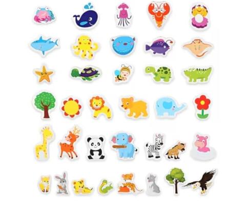 Lot de 36 Aimants pour Enfants - Jouets Éducatifs en Bois pour Réfrigérateur et Tableaux Magnétiques - Dessins Animés