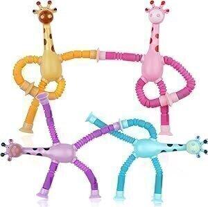 Ainiv Lot de 4 girafes télescopiques à ventouse - Jouet sensoriel - Jouet à ventouse télescopique - Jouet éducatif amusant pour enfants et adultes : Amazon.com.be: Jouets
