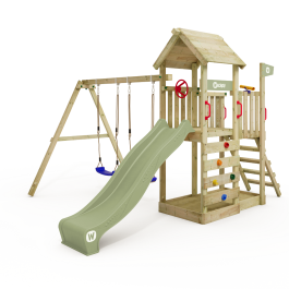 en toute liberté. Il est possible d'ajouter toutes vos envies cadeaux et de recevoir les dons directement sur votre compte. Avec les dons reçus, vous êtes alors libre d'aller acheter vos produits (comme ce 'Aire de jeux Wickey MultiFlyer, avec toit en bois et différents modules d'extension