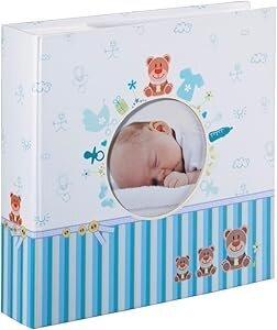 Hama Album photo "Tim" (pour 200 photos au format 10 x 15 cm, petit album de taille 22,5 x 22,5 cm, album photo bébé de 100 pages blanches, ciel, élégant, pour garçons, enfants, bébés) Bleu.