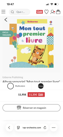 Ce produit est extrait d'une liste de naissance déposée sur Kadolog. Kadolog permet de créer des listes de naissance en toute liberté. Il est possible d'ajouter toutes vos envies cadeaux et de recevoir les dons directement sur votre compte. Avec les dons reçus, vous êtes alors libre d'aller acheter vos produits (comme ce ' Album sensoriel "Mon tout premier livre" | Usborne Publishing ') où et quand vous le souhaitez.
