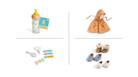 Après la poupée, les accessoires : vêtements, chaussures, biberons, brosse... adaptée à la poupée Joséphine aussi dans la liste (Pomea de 32 cm).