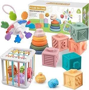 Aliex 4 en 1 Jouet Bebe, Jeux Montessori Bébé Eveil - Cube d'activité Bébé - Silicone Souple | Cadeau Bebe Jeux Educatif : Amazon.fr: Jeux et Jouets