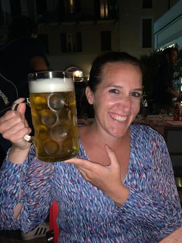 A mix of all the good things Isaline has not been allowed to eat or drink during the last months: steak saignant, unpasteurised cheeses, cold cuts, oysters, tartare, sashimis, sushis, champagne, ... or even a beer the size of her head! :-)