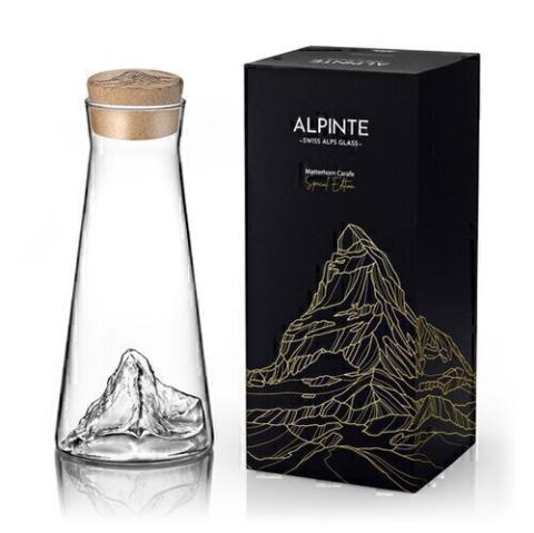Édition spéciale avec bouchon en liège gravé d'une magnifique illustration de la montagne réalisée spécialement pour Alpinte par l'artiste suisse Corinne Weidmann. Livrée dans un emballage cadeaux premium. Une carafe au look unique réalisée à la main, avec une représentation ultra réaliste du Cervin. Son design épuré met parfaitement en valeur la plus iconique des montagnes suisse. D'une hauteur de 24cm elle peut contenir jusqu'à 1 litre de liquide. Fabriqué avec du verre borosilicate elle est très résistante aux liquides chaud comme au froid ainsi qu'aux chocs mécaniques.