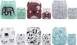 Alva Baby Lot de 6 Couches réutilisables lavables en tissu + 12 inserts 6DM16-FR : Amazon.fr: Bébé et Puériculture