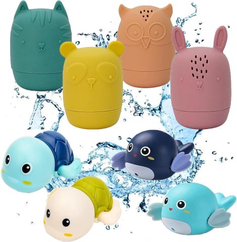 Jouet de Bain Bébé, 8 Pièces Jouet de Bain pour Enfant, Jeux de Bain pour Bebe, Animaux Jouets Flottants, Jeux de Bain pour Bebe Enfant 1 2 3 4 5 Ans
