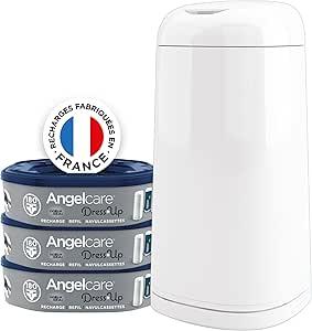 Angelcare Poubelle à Couches + 3 Recharges Anti Odeurs/Grande Capacité Antibactérien Usage Simple Dress Up, Blanc : Amazon.com.be: Bébé et Puériculture
