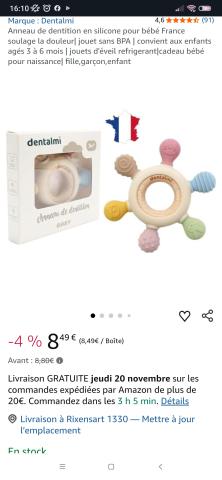 Ce produit est extrait d'une liste de naissance déposée sur Kadolog. Kadolog permet de créer des listes de naissance en toute liberté. Il est possible d'ajouter toutes vos envies cadeaux et de recevoir les dons directement sur votre compte. Avec les dons reçus, vous êtes alors libre d'aller acheter vos produits (comme ce 'Anneau de dentition ') où et quand vous le souhaitez.