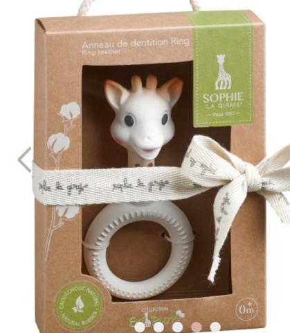 Ring Anneau de dentition Sophie la girafe en caoutchouc 100% naturel pour apaiser la poussée dentaire et s'amuser!Boite cadeau.
