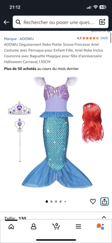 Ce produit est extrait d'une liste de cadeaux (Anniversaire, Noël, ...) déposée sur Kadolog. Kadolog permet de créer des listes de cadeaux (Anniversaire, Noël, ...) en toute liberté. Il est possible d'ajouter toutes vos envies cadeaux et de recevoir les dons directement sur votre compte. Avec les dons reçus, vous êtes alors libre d'aller acheter vos produits (comme ce 'AOOWU Ariel Little Mermaid Princess Ariel Costume with Wig for Children, Ariel Dress Included Crown with Magic Wand for Birthday Party, Halloween Carnival, 130 cm : Amazon.fr: Toys & Games ') où et quand vous le souhaitez.