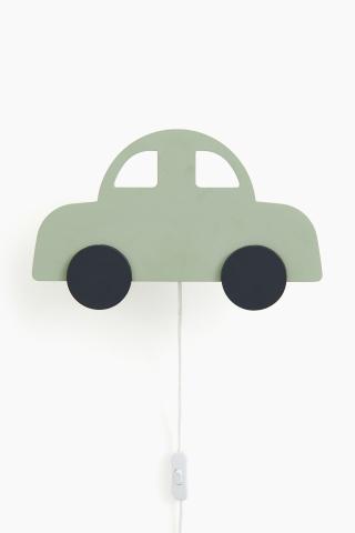 Applique en MDF peint. Modèle en forme de voiture avec décor ajouré qui laisse passer la lumière. Fixation murale en métal et câble avec interrupteur en plastique. Douille de type E14. LED 6 W maximum. Ampoule non incluse. Hauteur 17 cm. Largeur 28,5 cm. Longueur du câble 160 cm.