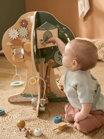 Un arbre merveilleux aux mille surprises composé de 4 faces qui regorgent chacune d'activités pour l'éveil des tout-petits et les emmènera à la découverte des formes et des couleurs ! Engrenage, boulier, miroir, zig