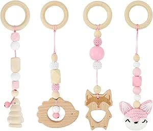 Arche Portique Deveil Eveil Bebe Bois 4 Pièces Arche de Jeux Bébé Jouet a Suspendre Bebe Arches de Jeu pour Jouet Poussette Nouveau Né en Bois pour Siège de Bébé Landau (Rose) : Amazon.fr: Bébé et Puériculture