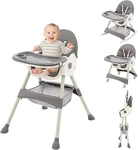 Arkyomi 3 en 1 Chaise haute pour bébé, siège de table pliable avec table et roues, chaises pour enfants de 6 mois jusqu'à 6 ans, assiette de dîner démontable, pédale et dossier réglables en hauteur : Amazon.com.be: Bébé et Puériculture