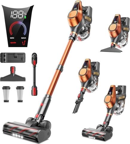 Aspirateur Balai sans Fil, 550W/45Kpa/60 Mins, Aspirateur sans Fil avec Affichage LED, Anti-Enchevêtrement, Brosse pour Canapé, 1,5L, Adapté pour Tapis, Sols Durs et Poils d'animaux(Orange) : Amazon.fr: Cuisine et Maison