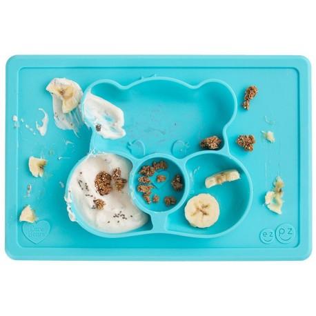 Assiette 4 compartments antidérapante de la marque EZPZ, coloris turquoise