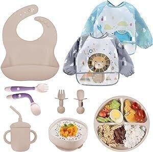 Assiette Bébé Set Repas Silicone, Lot de 10 Coffret Repas Bebe, Enfant Set Couverts Vaisselle pour Sevrage Manger Apprentissage, Set Vaisselle Silicone Repas Bébé, Avec Ventouse : Amazon.fr: Bébé et Puériculture
