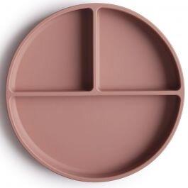 Avec l'assiette à compartiments en silicone avec ventouse de la marque Mushie, votre enfant pourra bientôt se mettre à table avec toute la famille.