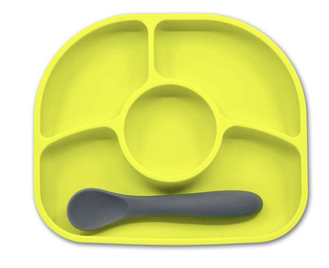 Assiette à compartiments ventousée et cuillère en silicone Vert et gris bblüv