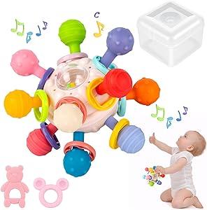 Atom Hochet et anneau de dentition Jouet pour bébé avec boîte de rangement transparente (rose) : Amazon.com.be: Bébé et Puériculture