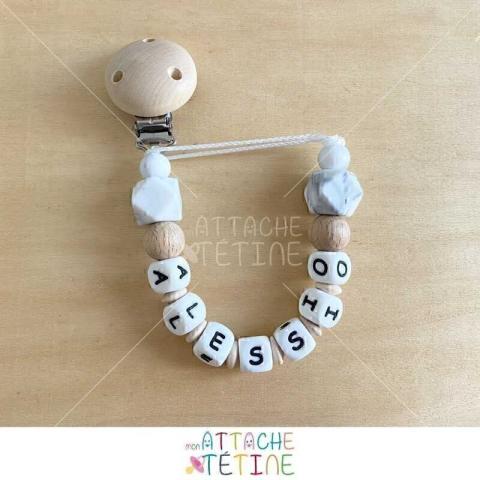 Chic et tendance : notre attache sucette personnalisé marbre bois pour un bébé élégant - Prénom gravé et perles en bois brut 💕