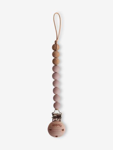 Attache-sucette MUSHIE en silicone. C'est un accessoire indispensable pour éviter d’égarer la tétine lors des balades. Fixé sur le vêtement de l’enfant, pour l’avoir toujours à portée de main, sa combinaison de perles toutes douces est idéale pour éveiller les sens de bébé et motiver sa motricité fine.
