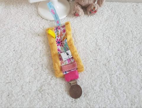 en toute liberté. Il est possible d'ajouter toutes vos envies cadeaux et de recevoir les dons directement sur votre compte. Avec les dons reçus, vous êtes alors libre d'aller acheter vos produits (comme ce 'Attache sucette fait main
